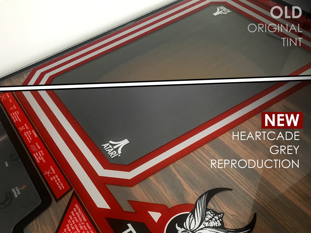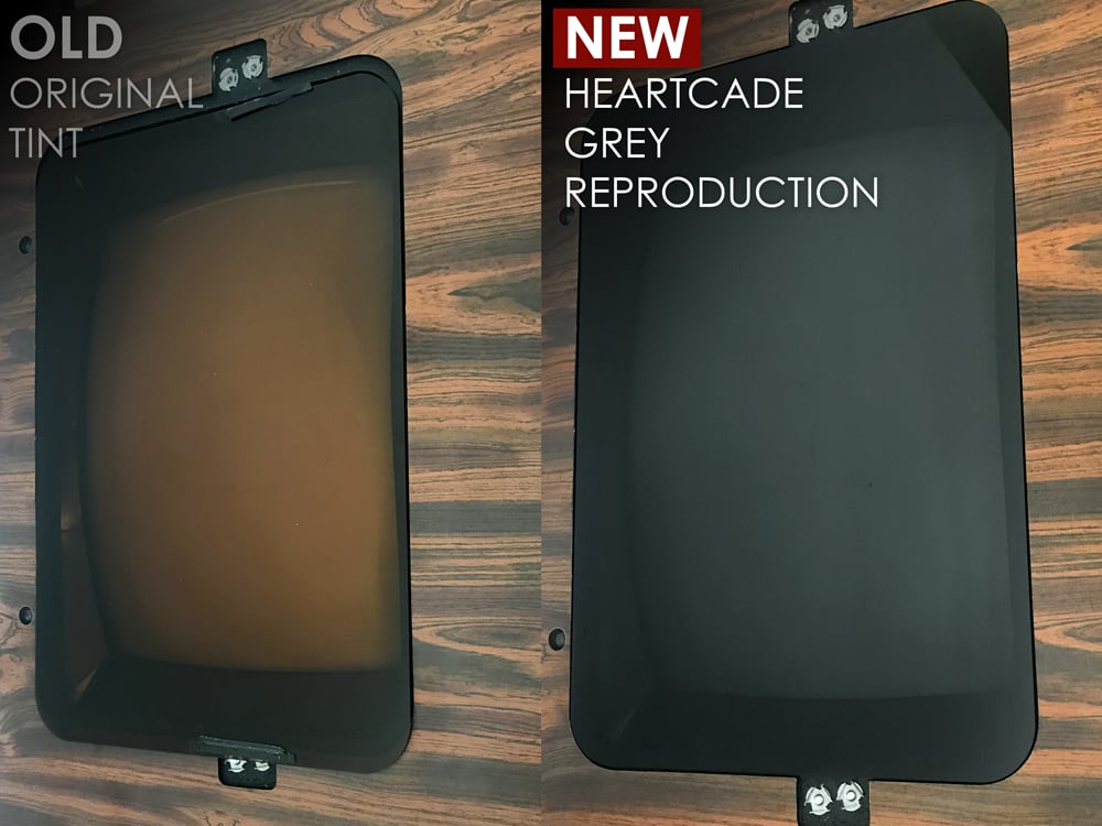 Dark grey tinted acrylic reproduction, great clarity, no yellowing of your monitor's image. Swap out your scratched, dingy, yellowed, or missing plexi.