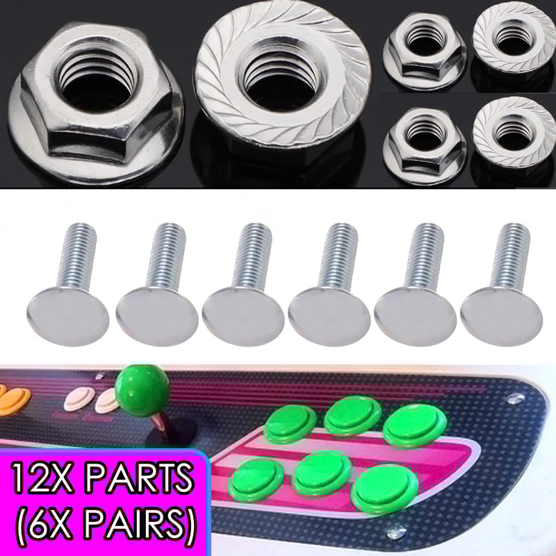 6 bolts and 6 nuts set, fitment perfect for your candy cab control panel.